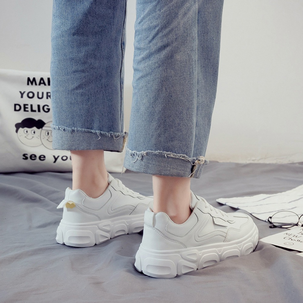 White Women Spring New Thick-Soled Increased Board Platform Shoes