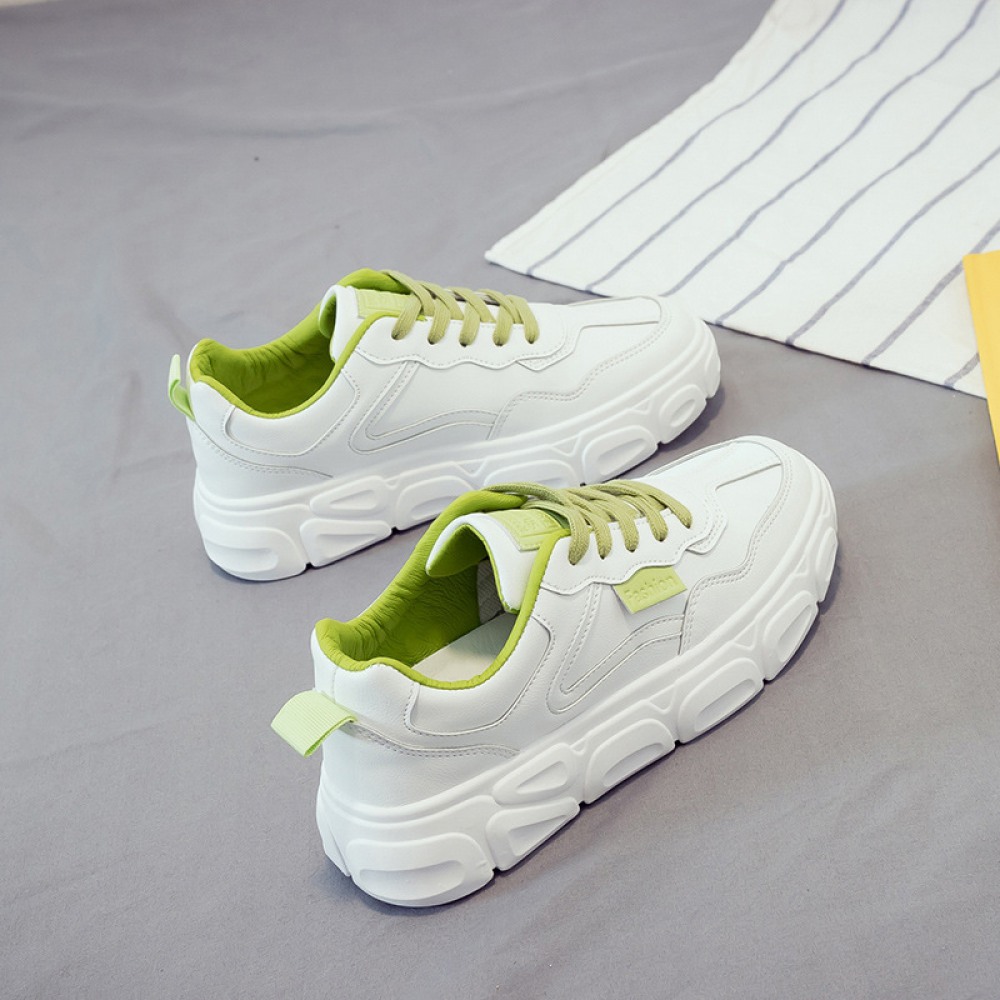 White Women Breathable Leather Thick-Soled Casual Shoes Sports Running Shoes