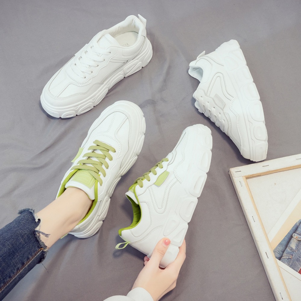 White Women Breathable Leather Thick-Soled Casual Shoes Sports Running Shoes